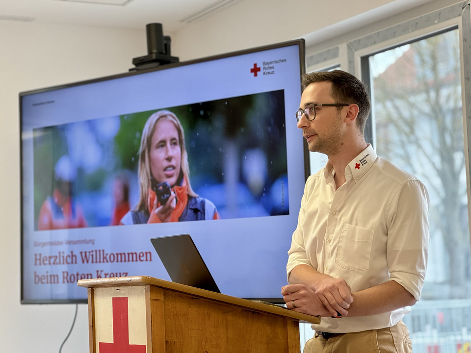 Kreisgeschäftsführer Christoph Kühnl stellt die Arbeit des Roten Kreuzes vor. (Foto: Eberl/BRK)