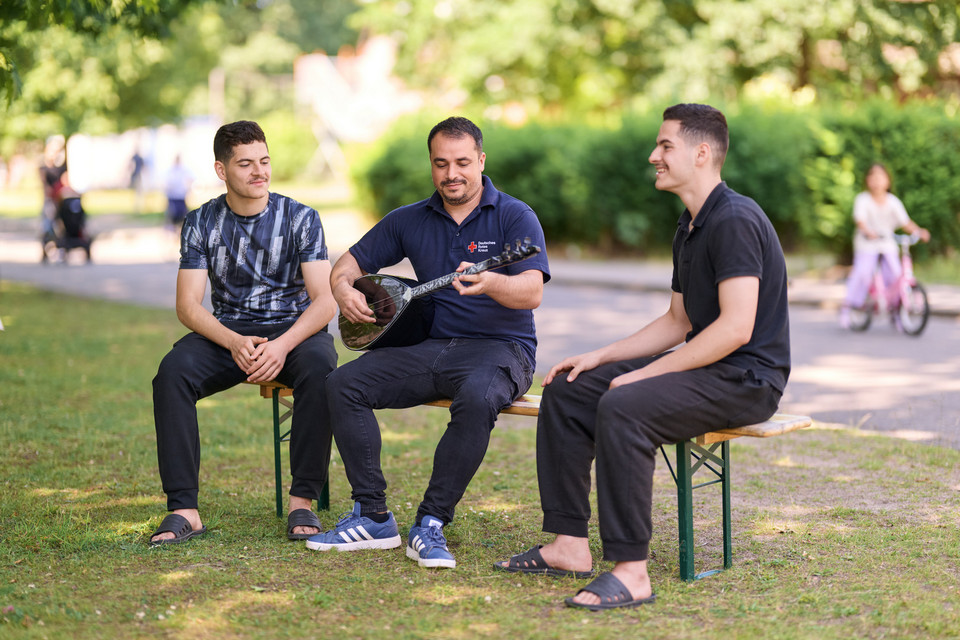 • Musik und Rhythmus hören bzw. erleben und für Teilnehmer, die dies möchten, selbst mitgestalten