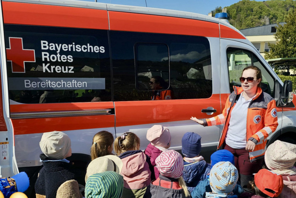 Ziel des Besuchs war es, bereits den Jüngsten die Arbeit des Rettungsdienstes näherzubringen und Berührungsängste abzubauen. Für die Bereitschaft Riedenburg bot sich zugleich die Möglichkeit, ihre Aufgaben und ihr Engagement vorzustellen.